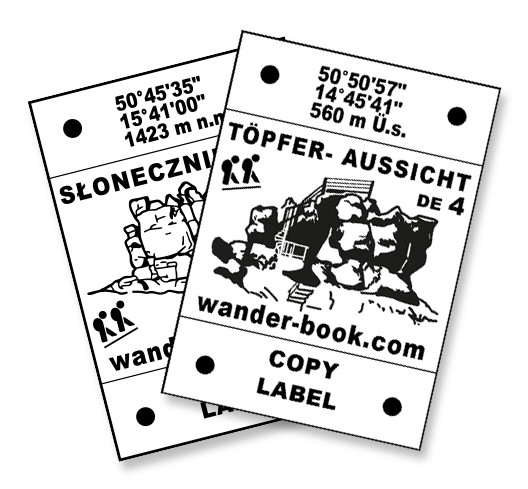 Aufkleber für Bezeichnung in den Besuchs- oder Gipfelbüchern. Sie können zu dem Aufkleber auch Ihre Unterschrift oder Bewertung des Orts mit der Datumangabe hinzufügen.